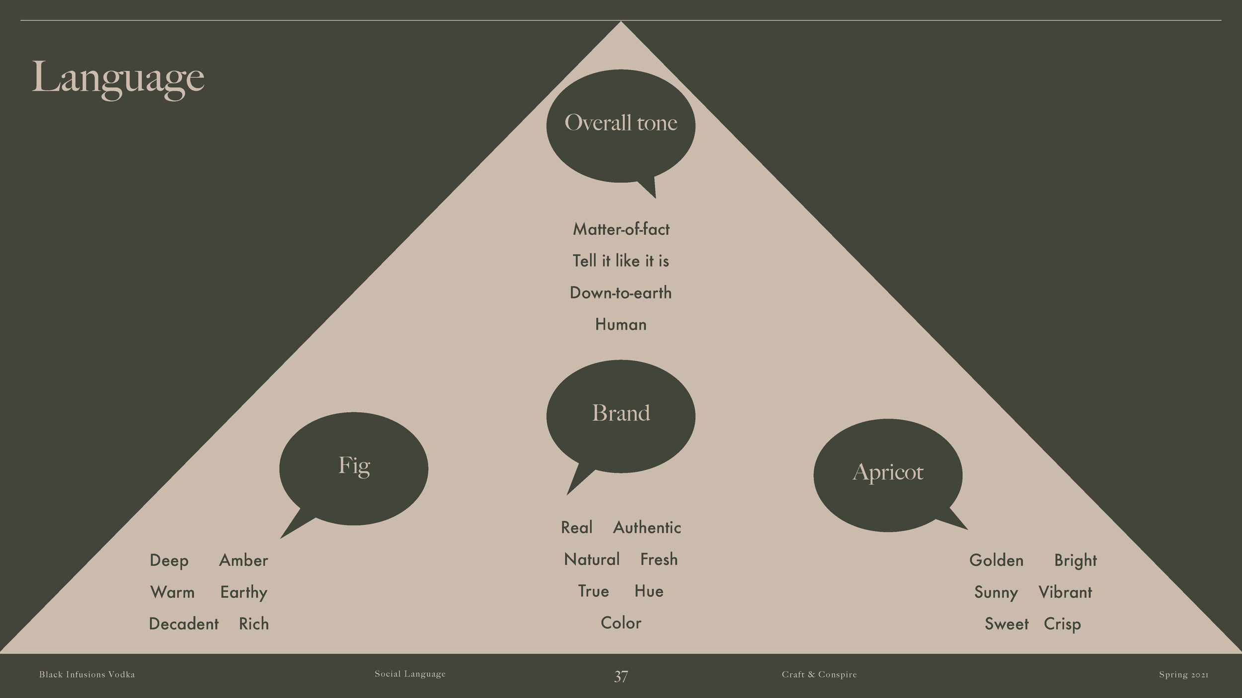 I also created a language guide for BI to use as they craft social posts, talk about their products, etc., tin order to align with our creative.